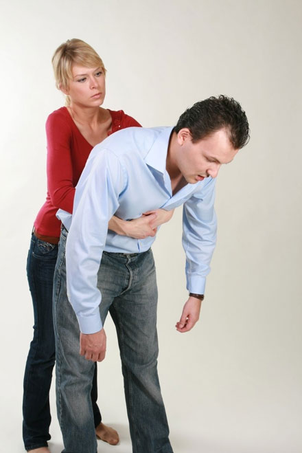 - Lässt sich die Atemwegsverlegung nicht beseitigen, müssen Rückenschläge und Oberbauchkompression im Wechsel solange durchgeführt werden, bis der Fremdkörper entfernt wurde oder der Rettungsdienst eintrifft
